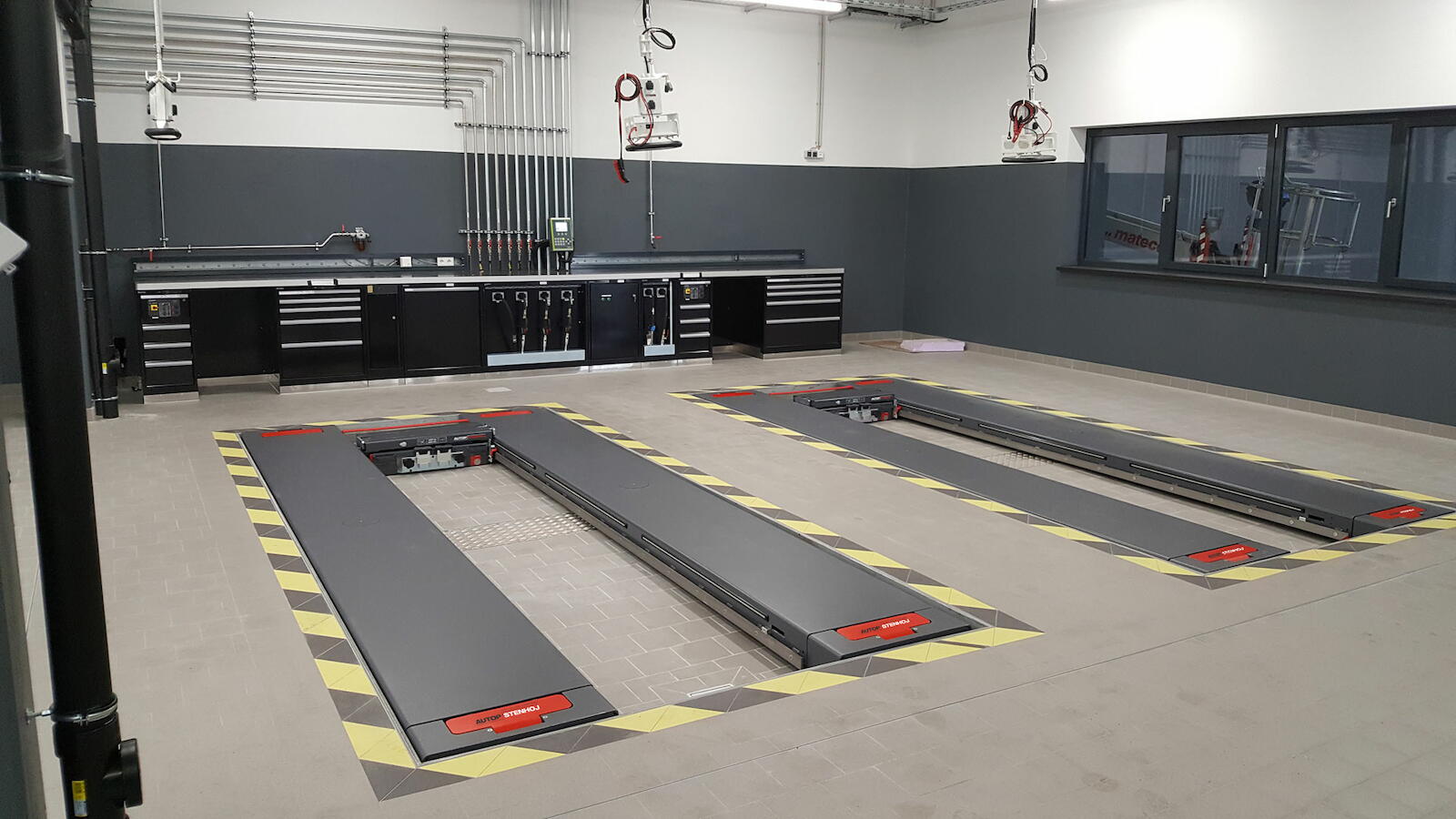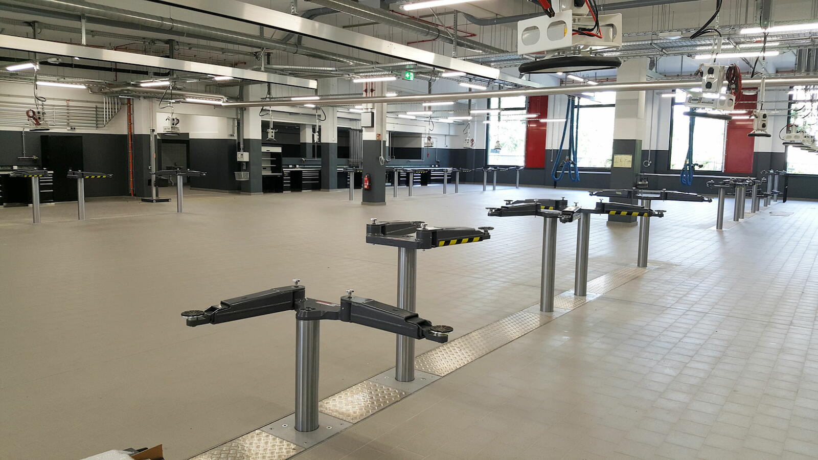 Daimler AG expanded its operations in Berlin - "Salzufer" at the end of 2019 with over 60 AUTOPSTENHOJ lifts and almost 80 power modules. Alone 47 Masterlift 2.35 Saa 260 and 9 Biglift 2.50 Saa 265 - each in a Multilift frame - were installed there as well as our Sharklift 4.65 F550 in recessed version for double wheel alignment.